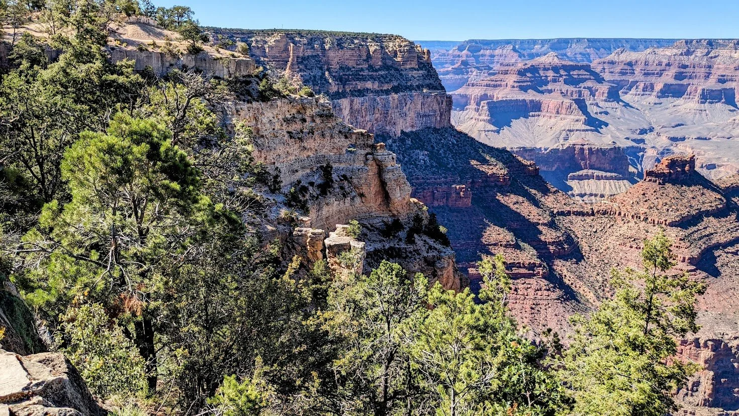 Temperatures aside, I had a marvelous time in Flagstaff and Northern Arizona. By booking ahead, I got a good deal on my room at the **Wyndham Super 8**. I rented a car from Enterprise for 2 days and even got an upgrade, thank you! The first day, I drove about an hour and a half to the **South Rim of the Grand Canyon**. OMG, what an amazing sight! Everyone should do this at least once in their lives. The geography of the area leaves your jaw on the ground—the Colorado Plateau stretches away forever as you descend from the Kaibab Plateau.